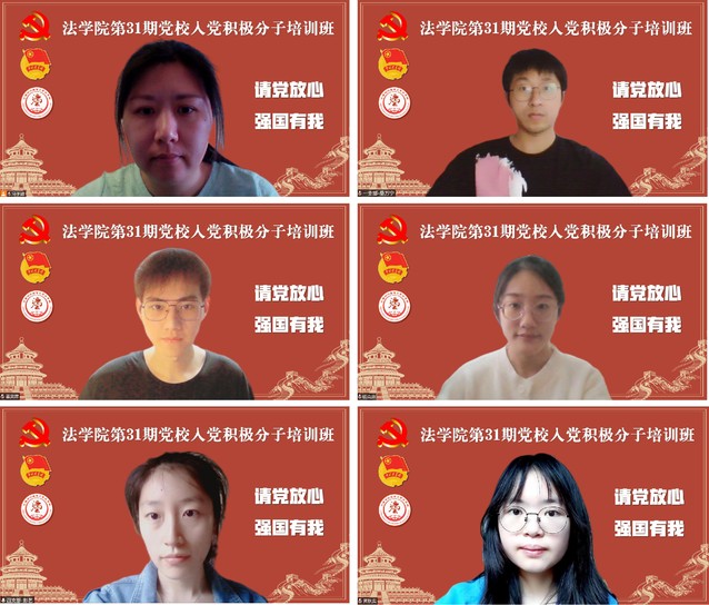 法學院黨委堅持對團員青年的入黨教育不斷線,在黨校形式和內容上都做了精心設計和創新,有效提升了教育培養的實效。從4月26日開班以來,組織了豐富的理論學習,邀請了校黨委組織員張燕老師講授專題黨課“奮斗鑄就青春本色,‘疫’線淬煉入黨初心”,馬克思主義學院張帥老師解讀十九屆六中全會精神和《中共中央關于黨的百年奮斗重大成就和歷史經驗的決議》;由學院4位青年黨員教師馬婷、連波、毛真真、高陽聯袂講授法學院黨史系列專業特色黨課,將黨史與專業知識相融合;特設2場“朋輩黨課”,由3名學生黨員分享“讓青春在黨旗下成長”初心成長故事,和4名入黨積極分子講述“青年先鋒‘疫’路先行”的實踐服務經歷。黨校期間,恰逢五四運動103周年,馮予婧在黨課上領學了習近平總書記在中國人民大學考察時的重要講話。此外,黨校還鼓勵團員青年通過學習強國平臺加強理論自學,通過“紅途”VR小程序開展云端紅色之旅了解黨史。