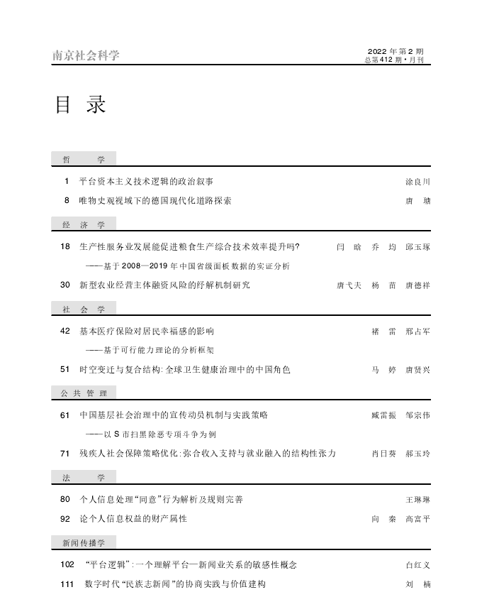 《時空變遷與復合結構:全球衛生健康治理中的中國角色》,載于《南京社會科學》2022年第2期