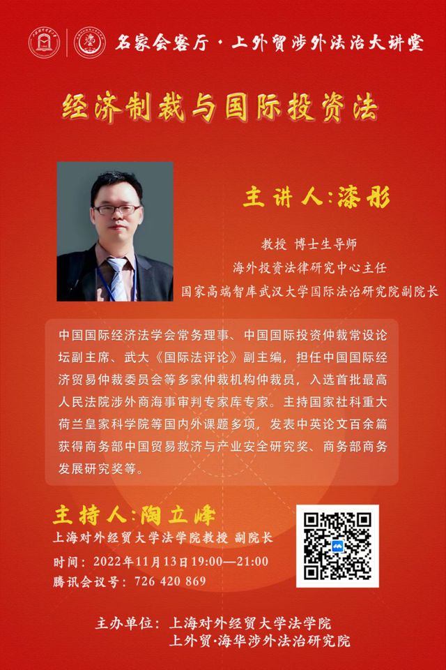講座預告|漆彤教授:經濟制裁與國際投資法