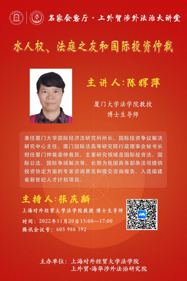 講座預(yù)告|陳輝萍教授:水人權(quán),法庭之友和國際投資仲裁
