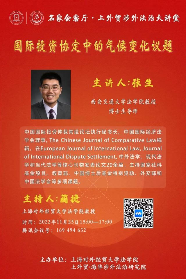 講座預告|張生教授:國際投資協定中的氣候變化議題