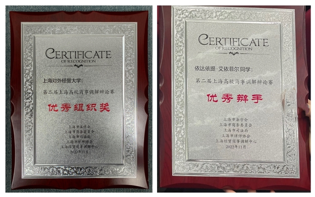 近日,由上海市法學會、上海市司法局、上海市商務委員會和上海經貿商事調解中心等單位共同舉辦的第二屆上海高校商事調解辯論賽圓滿落幕。最終,我校代表隊晉級八強,獲優秀組織獎,隊員依達依提·艾依菲爾被評為優秀辯手。