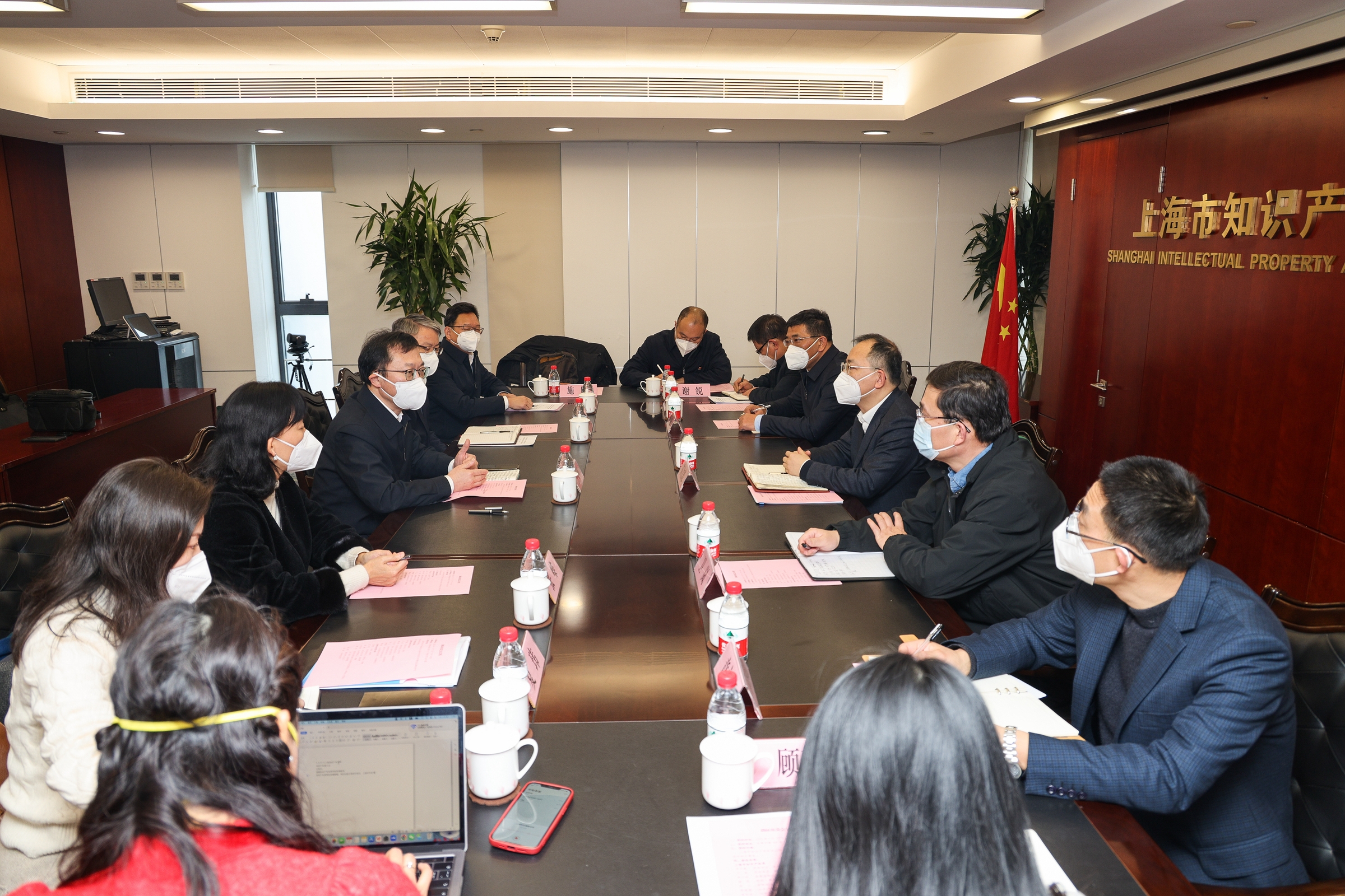 芮文彪熱烈歡迎學校領導到訪市知識產權局,高度評價學校對知識產權國際規則研究的支撐,特別感謝學校對知識產權工作的高度重視。他指出,隨著我國對外開放進程不斷深入,知識產權成為驅動發展的剛需,也是國際經貿的標配。他強調,面對新的形勢和新的任務,上海在全國知識產權先行先試的工作中發揮著重要作用。上海將進一步推動知識產權創造、運用、保護、服務和國際合作的高質量發展。他希望學校發揮特色優勢,通過共建研究院,重點圍繞知識產權國際規則、海外知識產權維權援助和預警、新興產業知識產權保護、以及知識產權創新人才培訓等方面,為上海市知識產權工作提供國際化、專業化的智囊支撐,共同助力上海加快建設國際知識產權保護高地和國際知識產權中心城市。