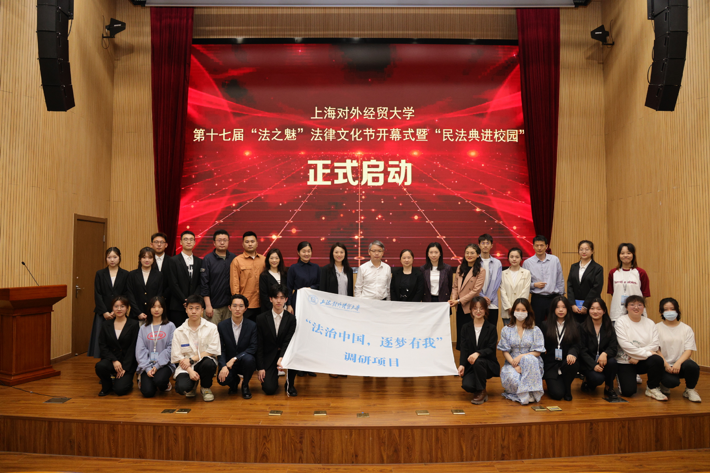 5月18日中午,上海對外經(jīng)貿(mào)大學(xué)第十七屆“法之魅”法律文化節(jié)開幕式暨“民法典進(jìn)校園”啟動儀式在新圖書館401思源報告廳舉行。校黨委副書記、副校長祁明,黨委宣傳部部長郭茜,黨委學(xué)(研)工部部長繆韻笛,校團(tuán)委書記司徒力云,法學(xué)院黨委書記黃靜、副書記商志民,工商管理學(xué)院黨委副書記張瑞娟,各二級學(xué)院團(tuán)組織負(fù)責(zé)人和近200名師生代表共同參加。