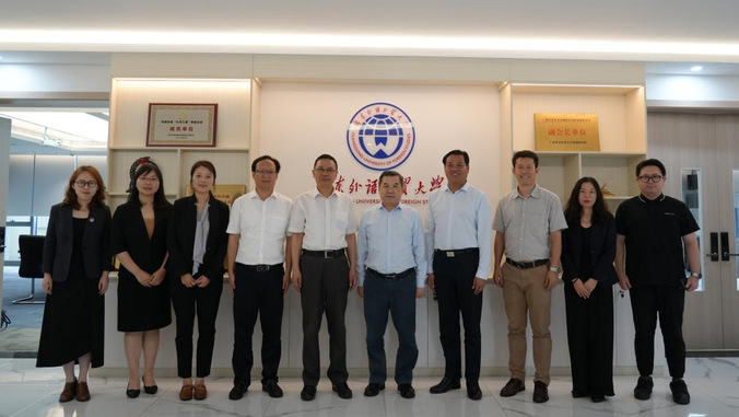 2023年5月22日,我校副校長徐永林、教務處長朱建明、法學院黨委書記黃靜、副院長陶立峰、外事主管柳菲菲一行赴廣東外語外貿大學進行調研。廣東外語外貿大學副校長焦方太,教務部部長、招生辦主任陳金詩、法學院黨委書記楊敏生、法學院院長陳云良、知識城校區管委會(籌)辦公室副主任湯程榮、教務部副部長唐靜參加調研。會議由廣外貿副校長焦方太主持。
