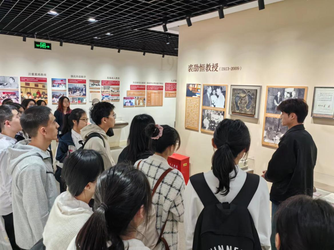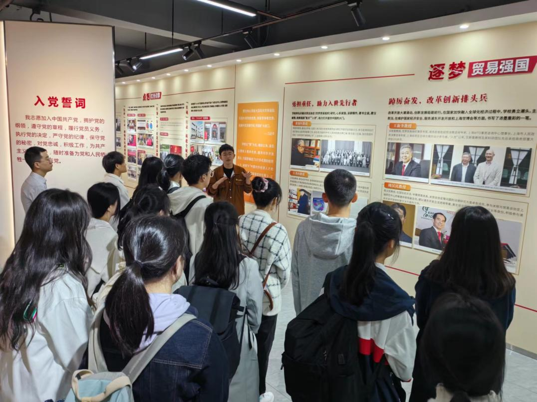 在黨建服務中心,師生們在志愿者的講解下,結合展陳史料,回顧了裘老在教育事業上嘔心瀝血,尤其是在國際法學、英美法律方面躬身教研,培養了一代代在對外經貿領域發揮著重要作用的法學人才,為中國對外開放事業作出了卓越貢獻。