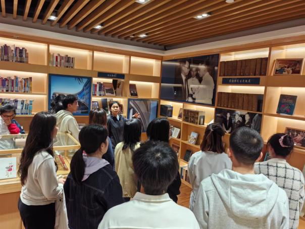 最后師生們來到貿大文庫,在工作人員的講解下,聆聽裘老在貿大的故事,參觀了裘老生前所藏書籍。面對一排排的法律經典書籍,沉浸式感受裘老嚴謹治學的精神。