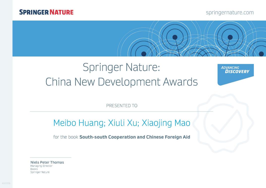 928日施普林格·自然(Springer Nature)宣布10部學術圖書榮獲今年的 “中國新發展獎(China New Development Awards)” 。該年度獎項由施普林格·自然于去年發起設立,旨在表彰施普林格·自然集團旗下SpringerPalgrave Macmillan出版的對聯合國可持續發展目標(SDG)有重要推進作用的學術書籍。國際發展合作研究院院長黃梅波教授2019年主編的South-South Cooperation and Chinese Foreign Aid為今年的10部獲獎圖書之一。