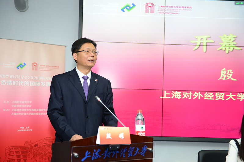 10月17日,由上海對外經貿大學與中國世界經濟學會主辦,國際發展合作研究院與國際經貿研究所承辦的主題為“后疫情時代的國際發展合作”中國世界經濟學會2020國際發展合作論壇在古北校區舉行。校黨委書記殷耀,中國農業發展銀行張文才副行長、商務部原歐洲司司長孫永福,商務部原援外司副司長、中國援外奉獻金獎獲得者王成安,國家國際發展合作署政策和規劃司代表谷瑩瑩,中國世界經濟學會代表、中國社科院世界經濟與政治研究所徐奇淵研究員出席論壇。來自國務院發展研究中心、商務部國際貿易與經濟合作研究院、中國社會科學院、復旦大學、廈門大學、吉林大學、中國農業大學、浙江師范大學、廣東外語外貿大學等高校和學術機構的專家學者,以及國家國際發展合作署、中國農業發展銀行、國家開發銀行、中國進出口銀行、中國貿促會投資促進中心、國際清算銀行等政府機關、行業機構的代表匯聚一堂,就后疫情時代的國際發展合作問題進行了深入探討。論壇開幕式由副校長張道方主持。