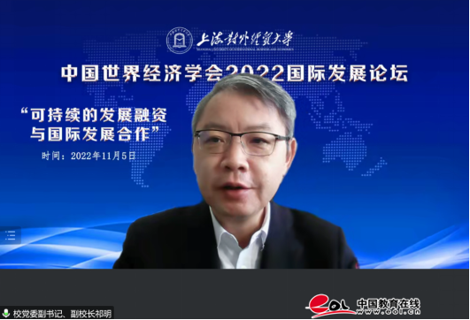 祁明代表上海對外經貿大學向出席論壇的專家學者表示熱烈的歡迎。他指出,2021年9月,習近平主席在第七十六屆聯合國大會提出了“全球發展倡議”。黨的二十大報告對“全球發展倡議”做了進一步確認,對中國的全球發展治理方案進行理論升華。中國全球發展理論探索與中國國際發展戰略研究亟需跟上時代發展的步伐,國際發展學科建設與國際發展人才培養也日益迫切。舉行中國世界經濟學會第五屆國際發展論壇,圍繞“可持續的發展融資與國際發展合作”主題,共同探討新時期中國國際發展合作面臨的國際發展學科建設問題,國際發展合作及國際發展融資的理論與政策問題等,為共同推進中國國際發展學科建設及人才培養,共同探討中國國際發展合作面臨的戰略性、前瞻性問題,更好地發揮智庫作用提供了寶貴的機會。他期待學校能與各界朋友攜手共進,加強優勢互補,開展寬領域、深層次務實合作,共同為國家新時期的改革開放與國際發展合作,做出新的更大貢獻。