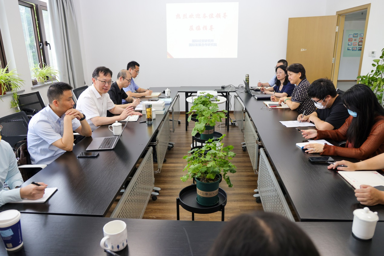 627日上午,校長汪榮明來到國際發展合作研究院調研座談國際發展合作研究院院長黃梅波以及全體在校教職人員參加調研座談會。