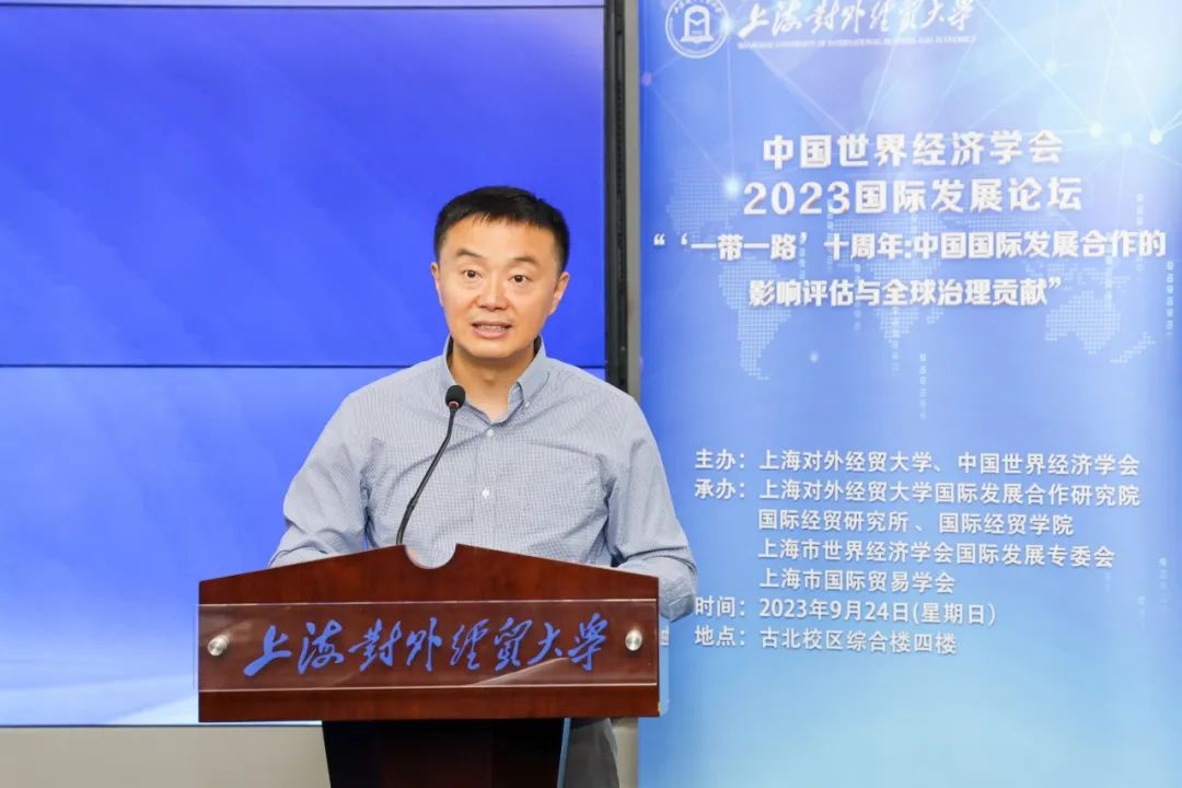 9月24日,由我院與國際經(jīng)貿(mào)研究所、國際經(jīng)貿(mào)學(xué)院、上海市世界經(jīng)濟學(xué)會和上海市國際貿(mào)易學(xué)會聯(lián)合承辦的“中國世界經(jīng)濟學(xué)會2023國際發(fā)展合作論壇”順利舉行。本次論壇的主題為“‘一帶一路’十周年:中國國際發(fā)展合作的影響評估與全球治理貢獻”。會議邀請了國務(wù)院發(fā)展研究中心、商務(wù)部國際貿(mào)易經(jīng)濟合作研究院、北京大學(xué)、復(fù)旦大學(xué)、南開大學(xué)、廈門大學(xué)、中國農(nóng)業(yè)大學(xué)、山東大學(xué)、云南大學(xué)、外交學(xué)院、中央財經(jīng)大學(xué)、上海財經(jīng)大學(xué)、對外經(jīng)濟貿(mào)易大學(xué)、廣東外語外貿(mào)大學(xué)、天津財經(jīng)大學(xué)、山東財經(jīng)大學(xué)、江西財經(jīng)大學(xué)、四川外國語大學(xué)、河北工業(yè)大學(xué)、上海師范大學(xué)、中國社會科學(xué)院、江蘇省社會科學(xué)院、公安部鄭州警察學(xué)院、中國石油和化工行業(yè)聯(lián)合會、國際發(fā)展觀察等專家學(xué)者共同參與此次學(xué)術(shù)會議。