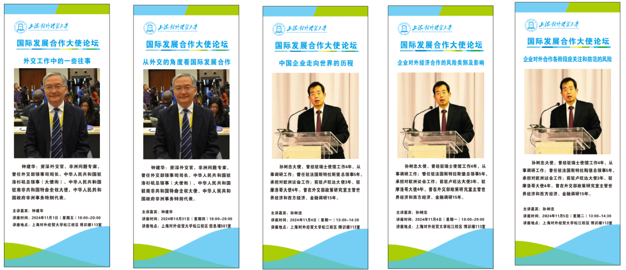 ??為加強(qiáng)中國對外援助和國際發(fā)展合作的理解,培養(yǎng)具有全球視野的新時代人才,上海對外經(jīng)貿(mào)大學(xué)國際發(fā)展合作研究院與國際經(jīng)貿(mào)學(xué)院10-11月聯(lián)合舉辦了“國際發(fā)展合作大使論壇”。本次論壇以線上線下相結(jié)合的方式進(jìn)行,邀請了四名資深外交官,共舉辦八次講座,就中國對外援助的戰(zhàn)略目標(biāo)、中非合作、企業(yè)“走出去”的歷程與風(fēng)險管理等重大問題進(jìn)行深入探討,為師生提供了高質(zhì)量的交流機(jī)會。