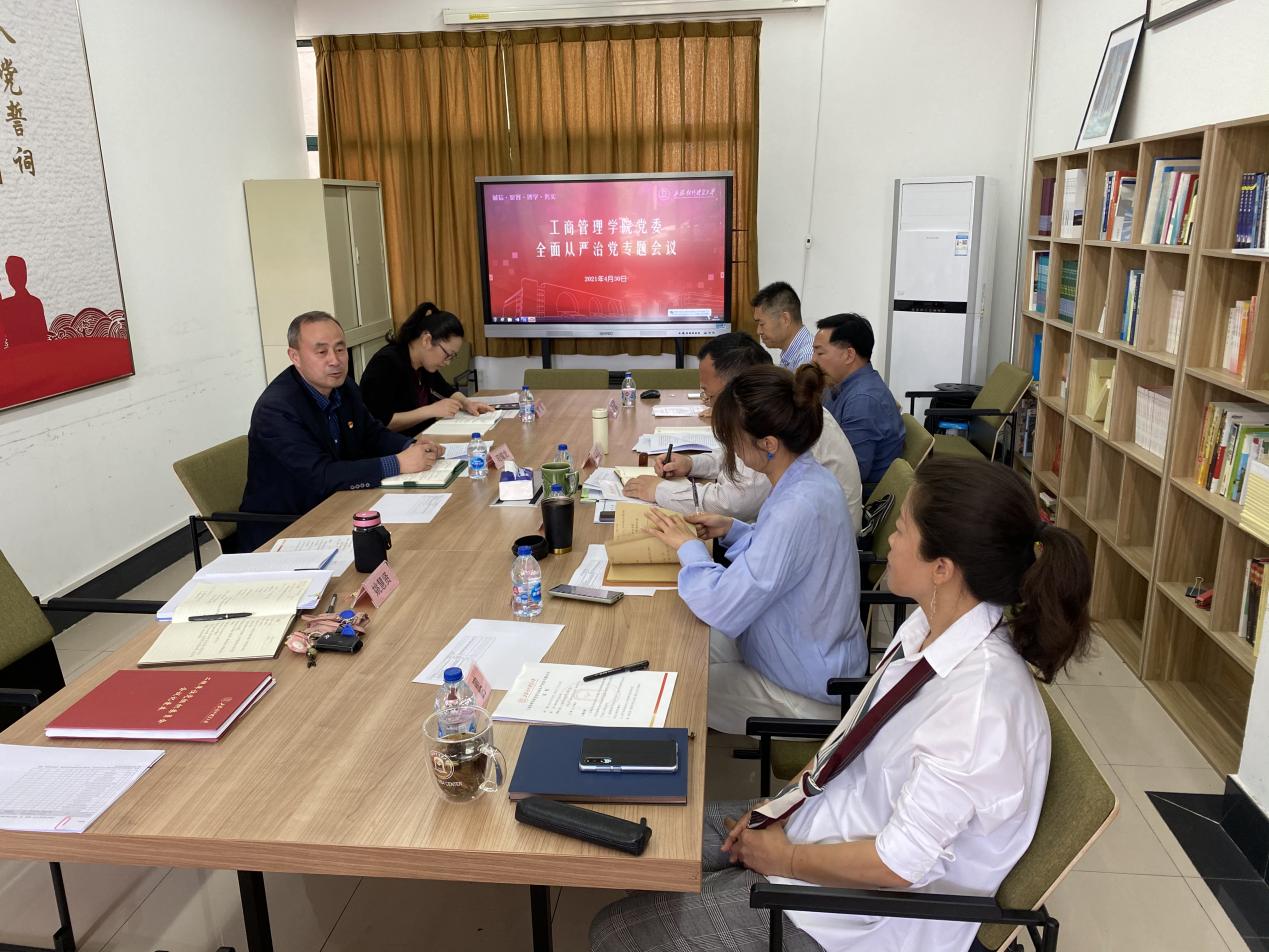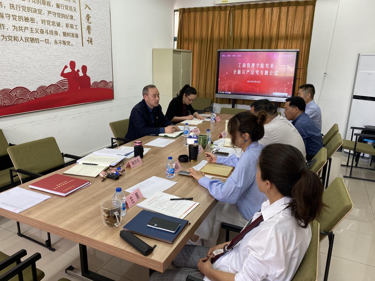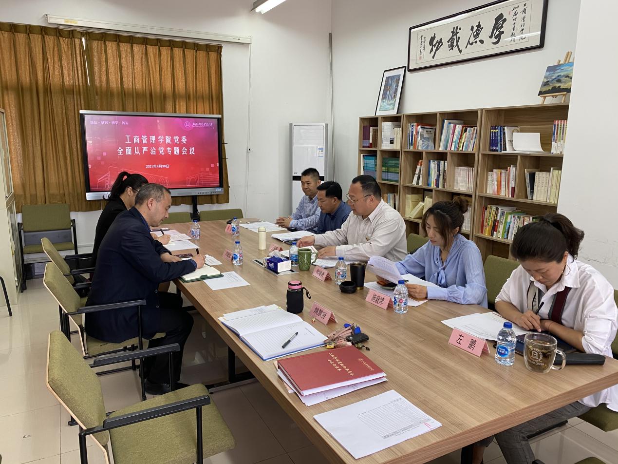 為了落實全面從嚴治黨管黨的政治責任,推動學院全面從嚴治黨管黨落到實施,工商管理學院黨委于2021年4月30日上午召開了全面從嚴治黨管黨專題會議,校紀委(監察專員辦公室)綜合辦公室主任司耀龍、校紀委(監察專員辦公室)綜合辦公室紀檢監察員吳迪出席,學院全體領導班子成員參加會議。會議由學院黨委書記武增勇主持。