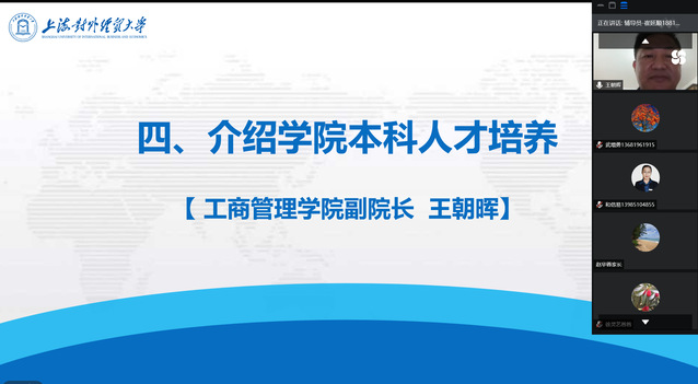 工商管理學院副院長王朝暉聚焦學院本科人才培養,從學科建設、專業培養方案、培養目標、課程教學等方面向家長做了詳細介紹,特別介紹了2021年數字營銷實驗班的開設與培養,對“大平臺培養(工商管理類)”的專業分流進行了重點講解。