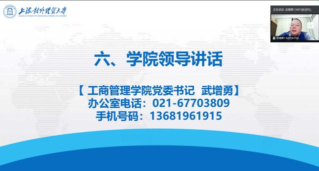 為了貫徹新時代黨的教育方針,落實立德樹人根本任務,加強學校教育與家庭教育的高效銜接,強化家校合作,促進家校育人機制的規范化和科學化,做好新生適應性教育,10月18日晚7點,工商管理學院2021級新生家長見面會在線上順利召開。工商管理學院黨委書記武增勇、院長姜秀珍、副院長王朝暉、學院黨委副書記施毅婷及2021級新生家長相聚云端,共話學生美好未來。本次家長會由2021級新生輔導員崔延順主持。