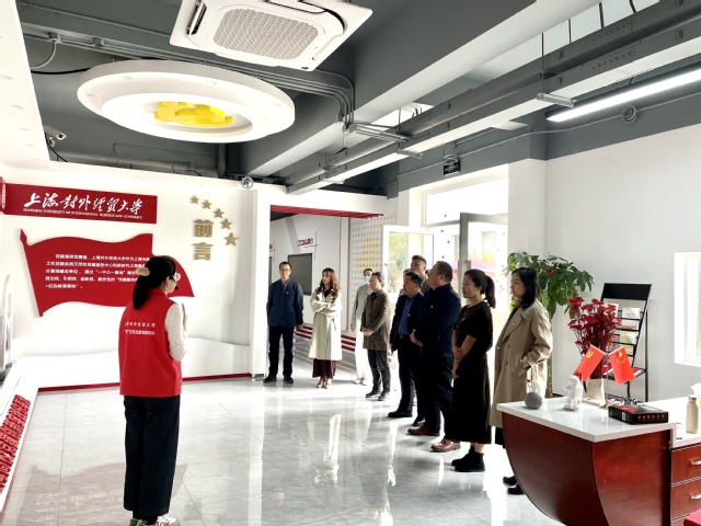 在集體學習《條例》開始前,與會人員在講解員的帶領下參觀了學校黨建服務中心的黨史學習教育主題展以及紅色引擎助力貿易強國展等,共同學習領會黨史中的革命精神以及長期以來學校黨建的探索與實踐。