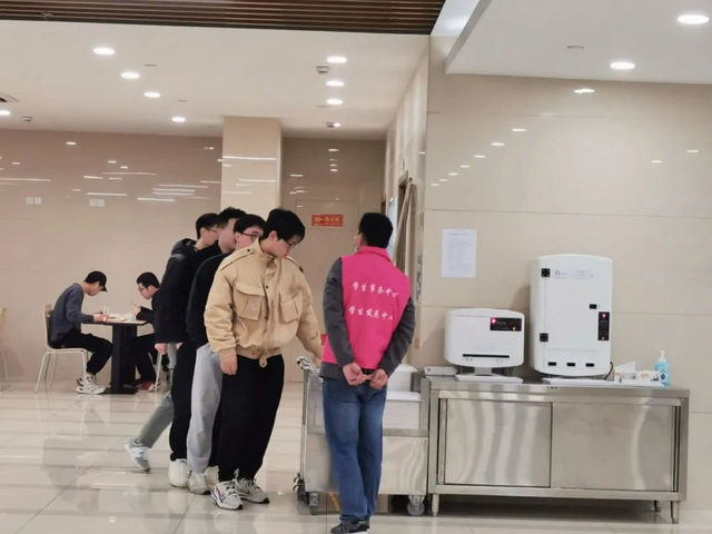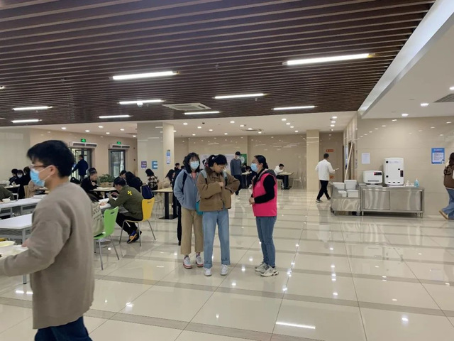在四位志愿者同志積極地引導(dǎo)下,來(lái)食堂就餐的同學(xué),排隊(duì)打飯時(shí)保持距離、戴好口罩,就座吃飯時(shí)保持間隔,用餐完畢時(shí)重新帶好口罩有序離開(kāi),使同學(xué)們整個(gè)用餐過(guò)程,時(shí)刻保持對(duì)疫情的警惕,對(duì)疫情的防控。