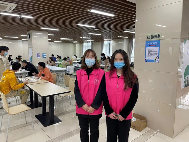 接到志愿者征集通知,我毫不猶豫地報(bào)了名。從3月15日第一天開(kāi)始錯(cuò)峰就餐,古北校區(qū)食堂各個(gè)角落便分布著幾名“粉紅馬甲”,形成一道靚麗的風(fēng)景。我們工商管理學(xué)院輪值3月18日11:00~12:00這一場(chǎng),17日上午我向當(dāng)班的志愿者詢問(wèn)要去哪里領(lǐng)志愿者服,傍晚我等當(dāng)班的志愿者結(jié)束后將4件粉紅馬甲交接過(guò)來(lái)。我們的工作雖然很簡(jiǎn)單,但在疫情形勢(shì)嚴(yán)峻下尤為重要。有個(gè)別同學(xué)進(jìn)餐廳時(shí)不習(xí)慣戴口罩,有些同學(xué)習(xí)慣三五成群地圍坐在一起吃飯,我就相應(yīng)地提醒記得戴口罩以及勸導(dǎo)間隔就坐。通過(guò)我們的溫馨小提醒可以讓每位同學(xué)加強(qiáng)疫情防控意識(shí),守護(hù)健康校園。