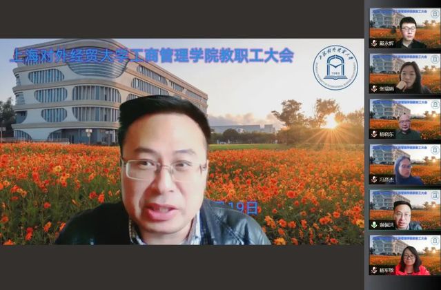 會議伊始,學院副院長王朝暉老師從疫情期間線上教學質量、教學培養方案修訂、課程建設(線上線下融合、在線開放課程等)、專業建設、學業預警與學生幫扶、本科畢業論文等方面介紹了本科教學工作近期安排與要求。學院副院長謝佩洪(掛職)向全院老師通報了MBA招生工作情況,感謝MBA招生工作中每一位老師的辛勤付出;MBA中心接下來會全力謀好MBA學生培養工作,特別強調了學位論文質量離不開各位論文指導老師的嚴格要求。學院副院長左鵬向全院老師通報了學術碩士研究生招生情況、疫情期間線上教學質量與研究生創新項目工作等,感謝各位老師克服困難積極支持,希望老師繼續重視線上教學質量與督促學生積極科研。