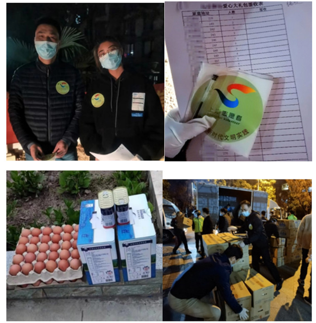 在學生社區外,工商管理學院學生第二黨支部黨員在居家隔離期間,也積極投身所住街道的社區志愿工作。支部黨員宋王妍主動加入崇明區城橋鎮玉環社區志愿者團隊。在志愿服務中,宋王研同志與其同樣身為黨員的父親一同幫助社區進行政府抗疫物資的搬運、發放、簽收工作,盡管該批物資送達社區時間已是深夜,但宋王研同志依舊堅持奮戰在一線,幫助社區高效完成物資分發工作,確保每家每戶第一時間獲得物資補給,她以堅定信念踐行初心使命,以實際行動展現黨員的責任擔當。