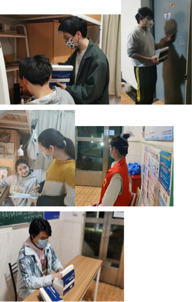 支部黨員按寢分發抗原試劑、駐樓監督進出情況、走訪慰問周邊同學