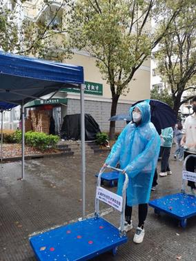 支部副書記李珍響應學院緊急號召,為83號樓隔離學生分揀物資,多次參加核酸檢測志愿者,完成過控場、入場引導、分流、協助醫生等工作,除此之外,還積極參與分餐送餐、超市引導、物資分揀等志愿工作約二十次。無論是天陰陰下著小雨,還是艷陽高照,她都絲毫不減為學生服務的熱情,而且非常自信地說,“在協助防疫地過程中收獲了成就感和快樂,并做到了提升和完善自己,相信與學校、老師、同學同在,我們一定能打贏這場疫情阻擊戰”!