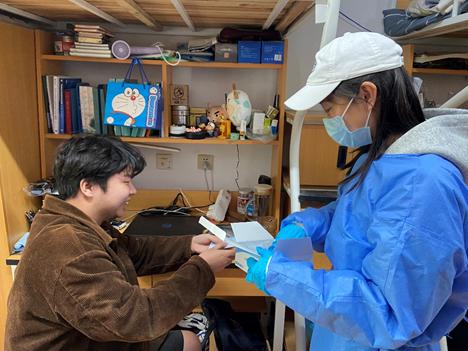 學校組建了一支社區黨員志愿服務隊,2021級研究生黨員同志于思淼作為核酸志愿者負責人之一,參與每日核酸工作,機動處理現場各項工作調度。所有黨員志愿者們一起,保障了社區內每輪核酸檢測任務的順利進行。在最近一次重點人群核酸和全員緊急核酸中,上崗時長長達10個小時。于思淼回憶說“那天核酸碼剛開始使用,為加快掃碼的速度,我們在入場前,臨時增加了一道人工核驗核酸碼的工序。”“我和另一位負責人,大概校對了全校五六千學生的核酸碼,練就了迅速識別混入其中健康云截圖的本領。”防護白、防護藍、志愿紅凝聚了很多力量,用愛守護著我們共同的“健康綠”。