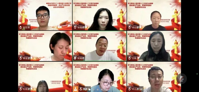 為深入學習領會和貫徹落實上海市第十二次黨代會精神,工商管理學院黨委積極部署,組織黨員開展多種形式學習活動,進一步把思想和行動統一到會議精神上來,將貫徹落實大會精神學習成果轉化為防疫情、促發展的強大動力,推進學院重點工作,以實際行動迎接黨的二十大勝利召開。