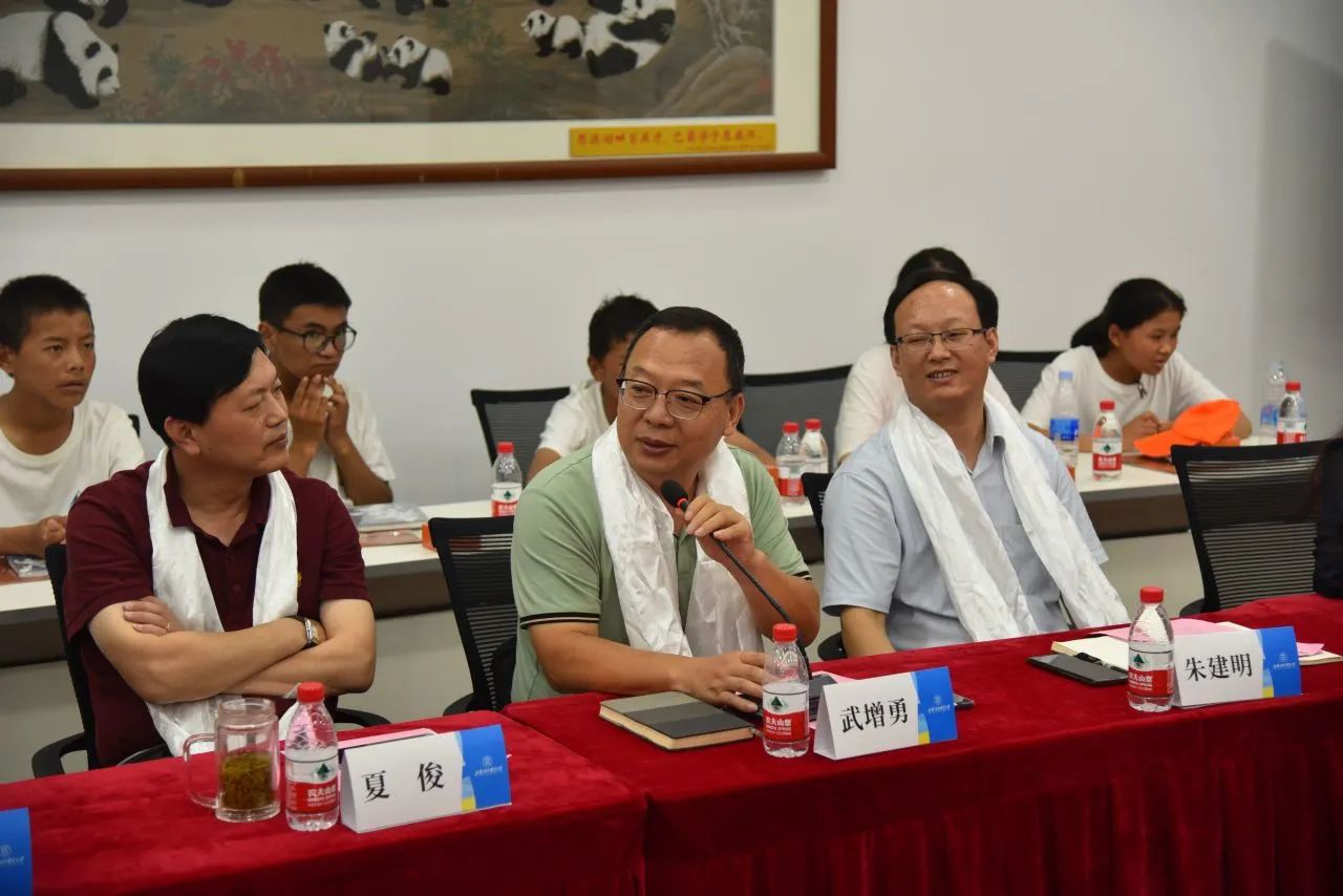 工商管理學院黨委書記武增勇對西藏日喀則市定日縣師生的到來表示誠摯的歡迎!武老師講到,“情暖西藏·點亮夢想”實踐活動跨越了5000公里的時空,從東海之濱走進了雪域高原,切實為廣大青年學生提供了援藏志愿服務平臺,有效促進了兩地青少年在思想與行動上同頻共振,共同學習紅色精神,汲取奮進力量。希望兩地攜手同行,全面推進大中小思政一體化建設。