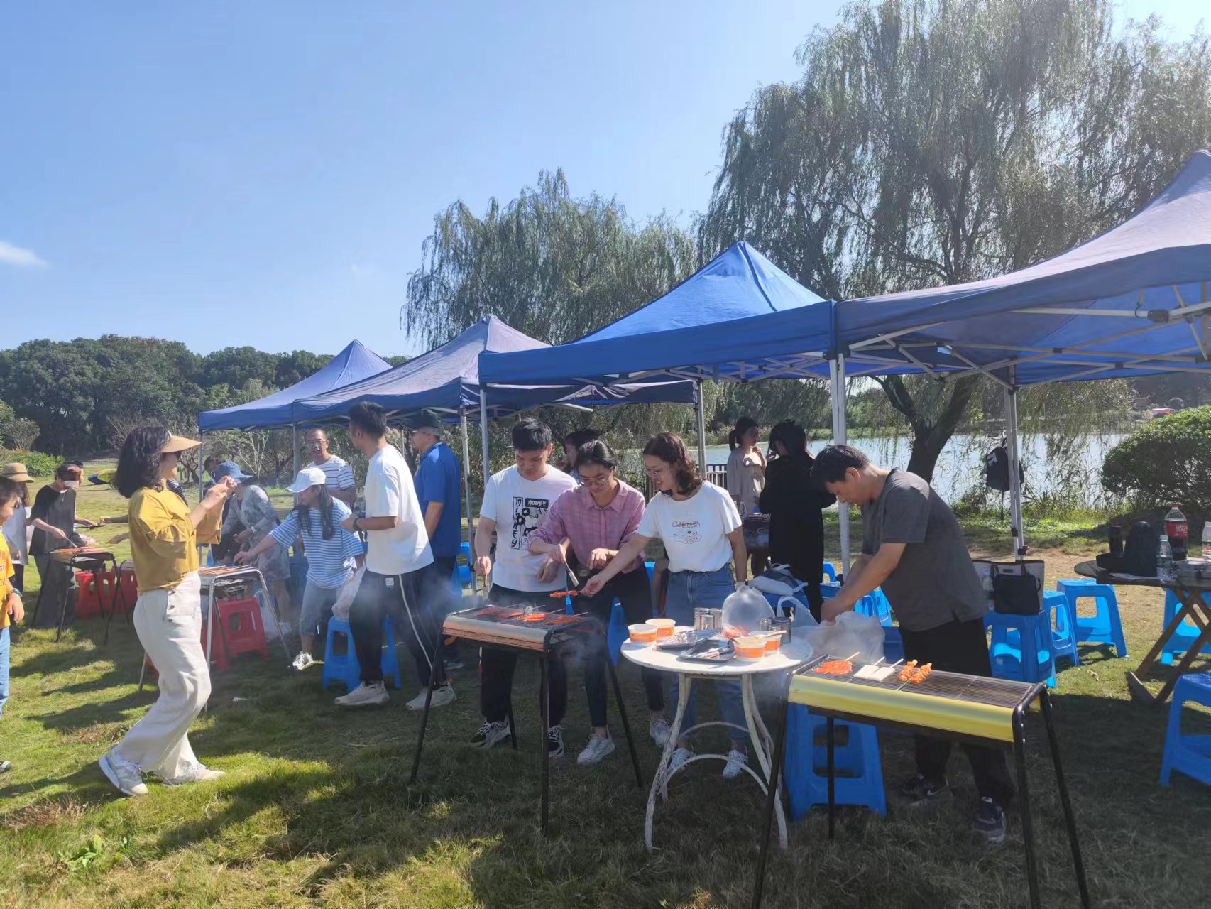 人員到齊后,學院工會組織老師們開展了一些趣味活動,大家參與性都很高。特別是中午組織大家一起動手做燒烤,更是把本次秋游活動氣氛帶到了高潮。每個烤爐前都圍滿了老師,有負責燒烤的,有負責分揀的,有負責擺放的。當然,更多的老師是在負責享受烤制好的美味,大家邊烤邊吃邊比較看看哪個老師烤的專業(yè)地道,陣陣歡聲笑語,把老師們身上的疲憊一掃而空。學院工會還為本次秋游活動精心準備了甜點和水果,配上燒烤,真是一頓難忘的美味大餐!