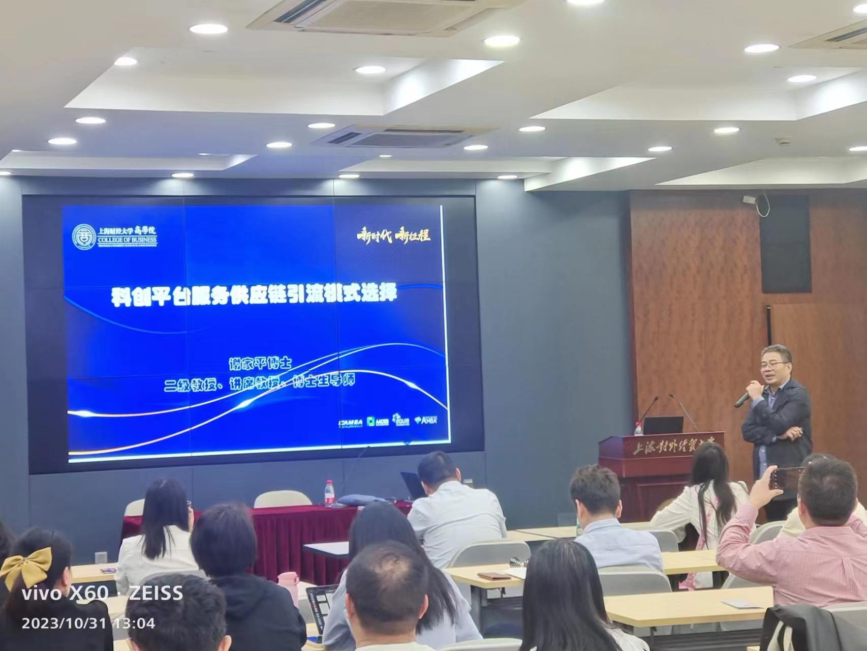 2023年10月31日,工商管理學院于信息樓503舉辦了本學期學術月活動。本次學術月活動邀請上海財經大學商學院二級教授、博士生導師謝家平教授分享其團隊近期在管理科學學報錄用的一篇學術論文《科創平臺服務供應鏈引流模式選擇》。