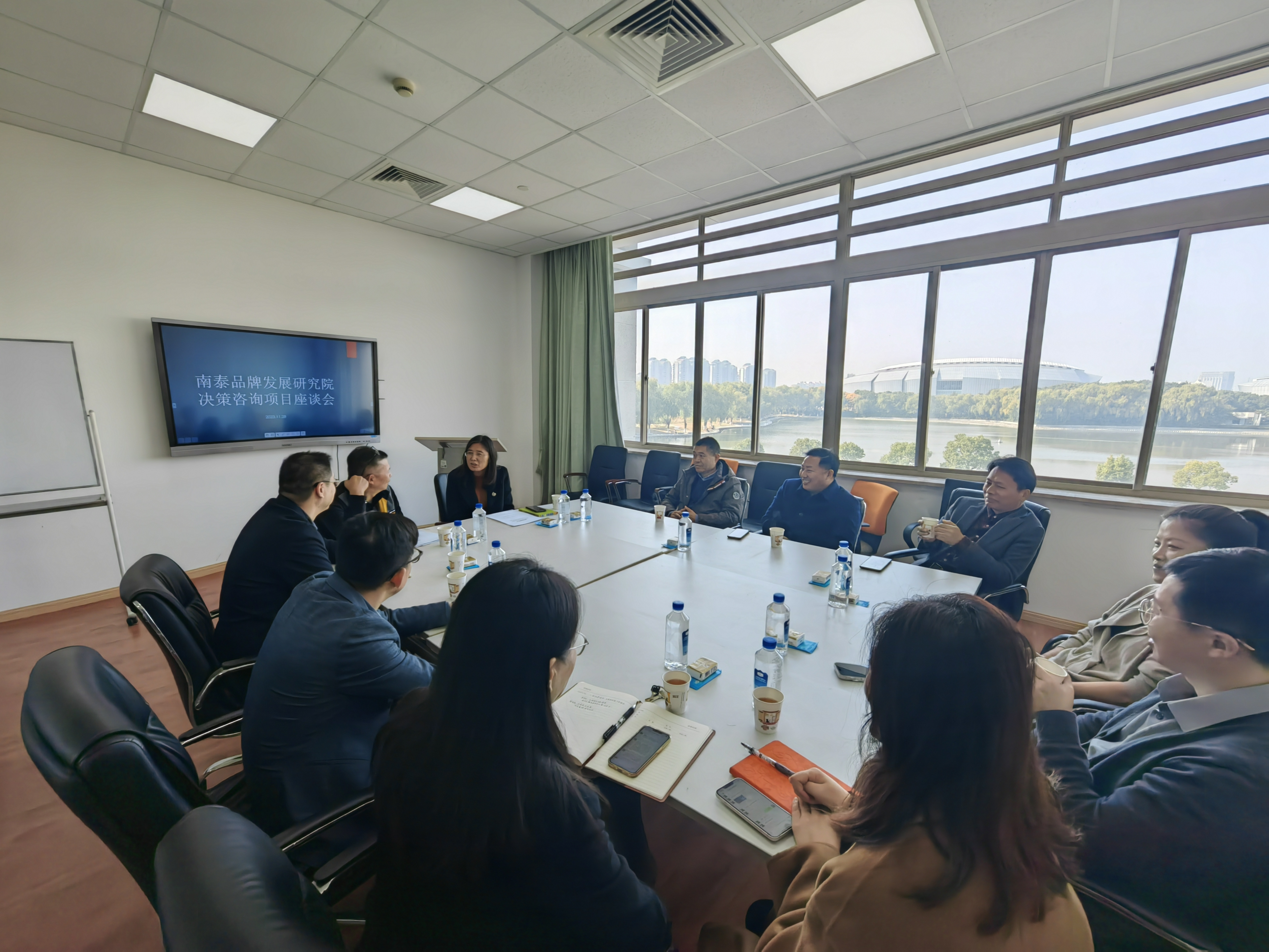 2023年11月28日,南泰品牌發展研究院邀請南泰瀚隆君霖企業集團董事長陳利民與南泰瀚隆君霖企業集團人力資源總監王云杰赴上海對外經貿大學松江校區信息樓338會議室,與上海對外經貿大學工商管理學院院長,南泰品牌發展研究院院長姜秀珍教授、楊浩副院長、楊軍敏副院長、張瑞娟副書記、吳國新教授、王朝暉教授、左鵬教授、鄧士昌副教授、南泰品牌發展研究院執行院長史楠副教授就長三角高速貨運鐵路項目和提升中國入境旅游項目展開座談。