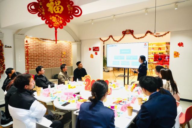 福兔辭舊,瑞龍迎春。日前,廣富林街道悅都社區和區稅務局的青年代表們走進上海對外經貿大學,和工商管理學院的留校學生們相聚在學生社區理享家,一同開展迎新春聯誼活動。