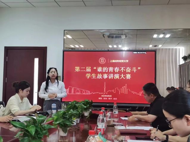 為進一步貫徹落實習近平總書記在黨的二十大報告中提出的“青年強,則國家強。當代中國青年生逢其時,施展才干的舞臺無比廣闊,實現夢想的前景無比光明”講話精神,激勵學生堅定不移聽黨話、跟黨走,懷抱夢想又腳踏實地,敢想敢為又善作善成,爭做有理想、敢擔當、能吃苦、肯奮斗的新時代好青年,上海對外經貿大學開展第二屆“誰的青春不奮斗”學生故事講演大賽。經自主報名、學院推薦,最終11名選手進入決賽。6月8日,演講比賽在行知樓303會議室舉行。