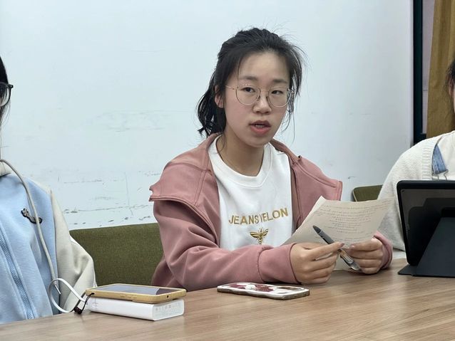 關于此次的團日活動,她提出了新的想法:在團支部結對共建上,可以通過以老帶新的傳幫帶聯系工商管理學院的22級與23級,或者擴大團支部共建朋友圈,與街道團支部或其他學院團支部聯合學習,將資源擴大化。她也提出在團支部宣傳方面,可以建設團支部專屬公眾號以記載團日活動的成果,對外展現支部風采。