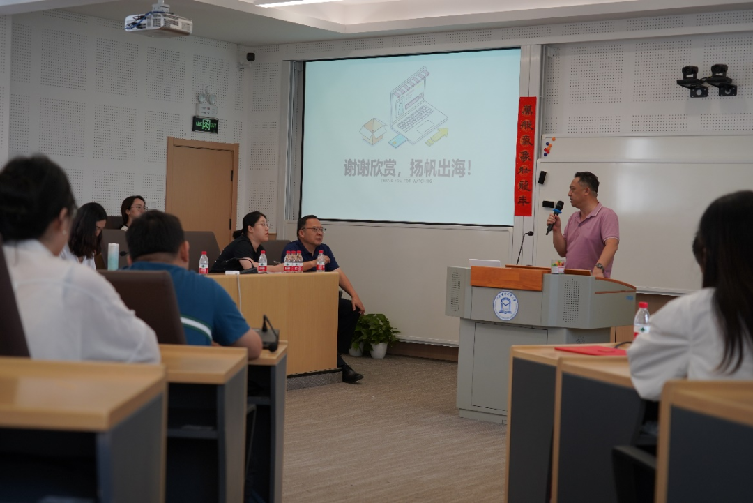 在接下來開展的跨境電商論壇活動中,兩位多年從事跨境電商行業并取得驕人成績的校友為大家做了精彩的演講,分別通過跨境電商平臺和賣家視角刨析跨境電商業務的機遇與挑戰。首先,來自跨境電商平臺的胡總為大家帶來“助力中國企業,開拓全球市場”為主題的演講,深入淺出地講解了跨境電商運營過程中平臺選擇和產品選擇這兩大焦點問題,并從產品,運營,物流,資金四個方面闡述了跨境電商所必須具備的條件。