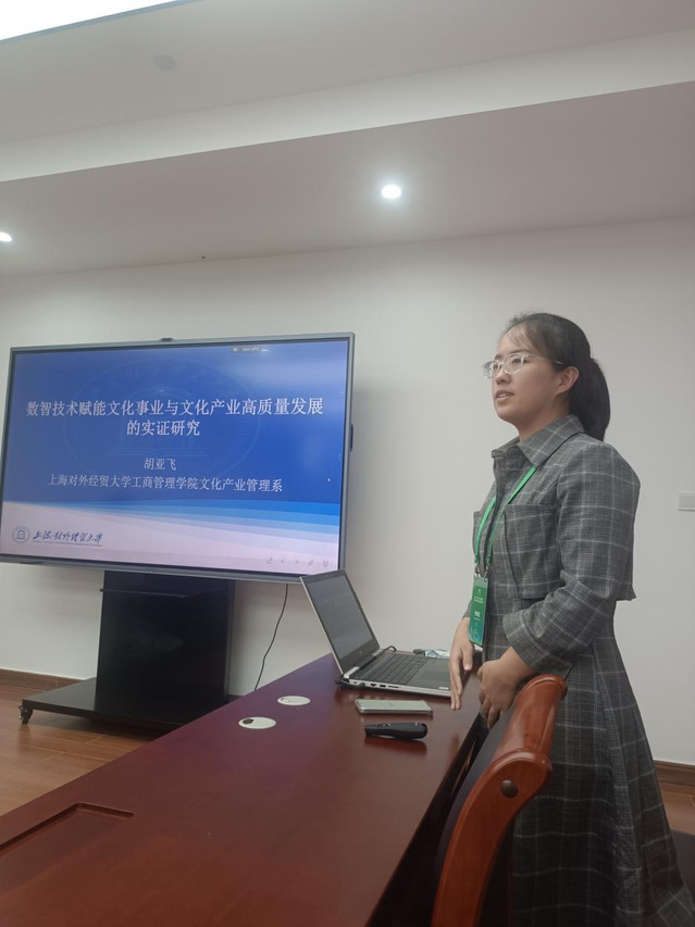 我院文化產業管理系的胡亞飛老師和研究生顧詩書同學在分論壇上,分別做了題為《數智技術賦能文化事業與文化產業高質量發展的實證研究》和《基于數智賦能的優秀傳統文化傳創策略研究》的論文演講,她們論文的新穎的觀點、獨特的視角和創新的研究結論,得到了專家的高度評價,也得到了與會嘉賓們的積極好評。
