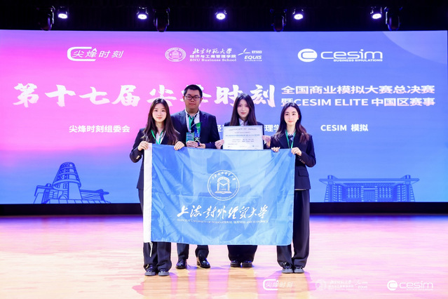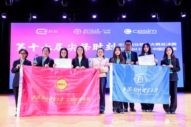 2025年3月28日-30日,第十七屆“尖烽時刻”全國商業模擬大賽總決賽在北京舉行。上海對外經貿大學在本屆比賽中再創佳績。本科代表隊“一氧化二氫”隊(團隊成員:2023級數字營銷實驗班李天一、陳瑤雯、李孫緣、蘇筱晰)榮獲全國一等獎中的第一名、MBA代表隊“第一梯隊”(團隊成員:2023級MBA杜昱函、楊宇寧、侯宛松、2024級MBA郭小瑞)榮獲全國二等獎。市場營銷系劉欣老師榮獲“優秀指導教師獎”。