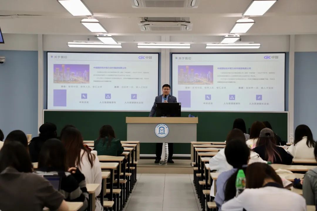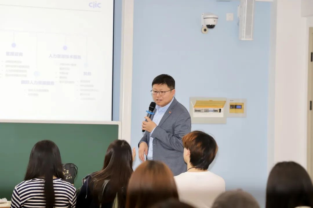 周老師從特色優(yōu)勢、專業(yè)優(yōu)勢、品牌優(yōu)勢三方面對中國國際技術(shù)智力合作集團(tuán)有限公司進(jìn)行全景式介紹,結(jié)合人力資源外包、靈活用工等典型案例,帶領(lǐng)同學(xué)們穿透行業(yè)表象,理解人力資源管理的核心價(jià)值。
