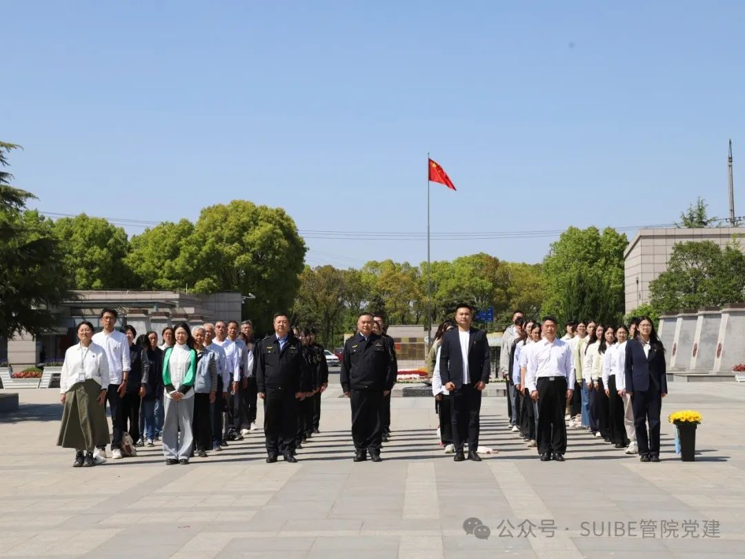 為緬懷革命先烈,傳承紅色基因,深入貫徹落實總體國家安全觀,4月15日全民國家安全教育日下午,上海對外經貿大學工商管理學院團委書記崔延順老師、團委副書記胡心鈺老師,帶領工商管理學院學生第三黨支部黨員代表、入黨積極分子、入團積極分子前往松江烈士陵園,與廣富林街道悅都居民區黨支部、廣富林街道市場監管所黨支部、上海辰山植物園園藝黨支部、松江電信新城黨支部、中國移動松江區域運營部黨支部一道開展“緬懷先烈守初心,清風鑄魂擔使命”主題黨日團日活動。