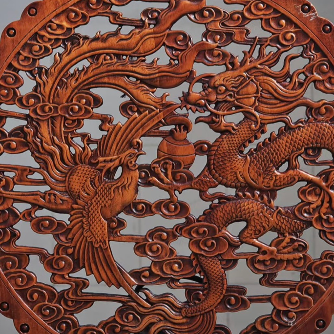 透雕:是在浮雕基礎上,鏤空背景部分,使其呈現出通透的效果,常用于屏風、燈籠等制作,增加了作品的層次感和藝術感染力。