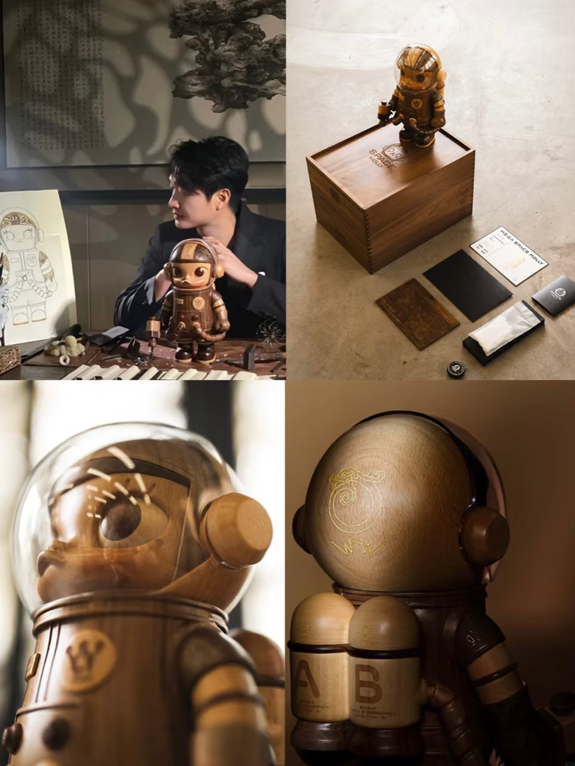 泡泡瑪特與雕刻藝術巨匠黃旺旺攜手,以「木」的神秘魅力為創意之源,打造出一款穿越時空維度的潮流藝術品。黃旺旺,這位繼承百年雕刻世家榮耀的第五代傳人,經過多年的磨礪與探索,他將古老的雕刻藝術與現代潮流的獨到見解完美融合,開創了一種全新的藝術語言。