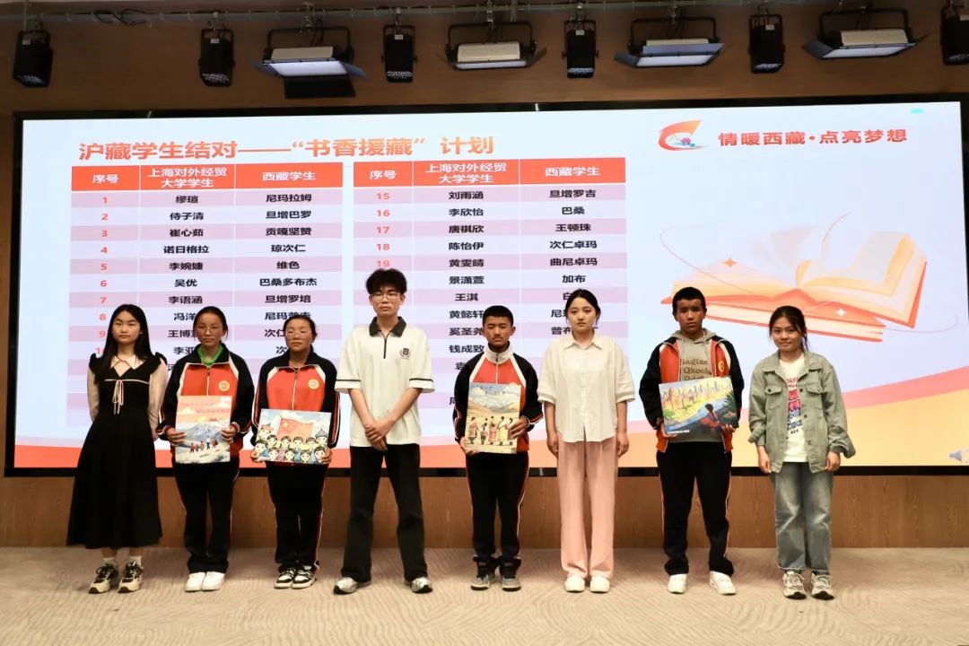 上經貿大師生代表向西藏學生代表贈送書籍,并宣布正式實行“書香援藏”計劃,滬藏學生結成28組互助對子,在未來攜手同行,互相交流讀書心得。