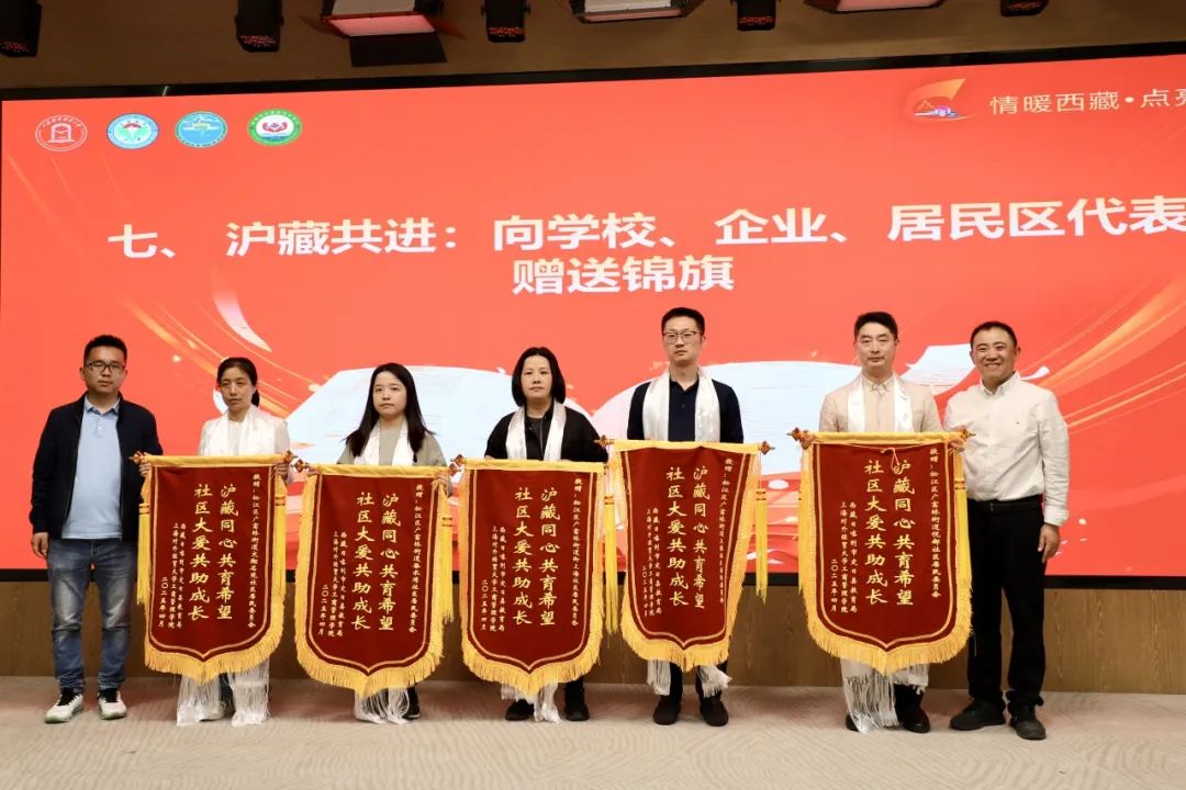 李本峰和汪海鯨向長期以來對滬藏交流給予大力支持的上海對外經貿大學工商管理學院、上海正泰智電港、廣富林居民區一一贈送錦旗,表達對各單位誠摯的感謝。