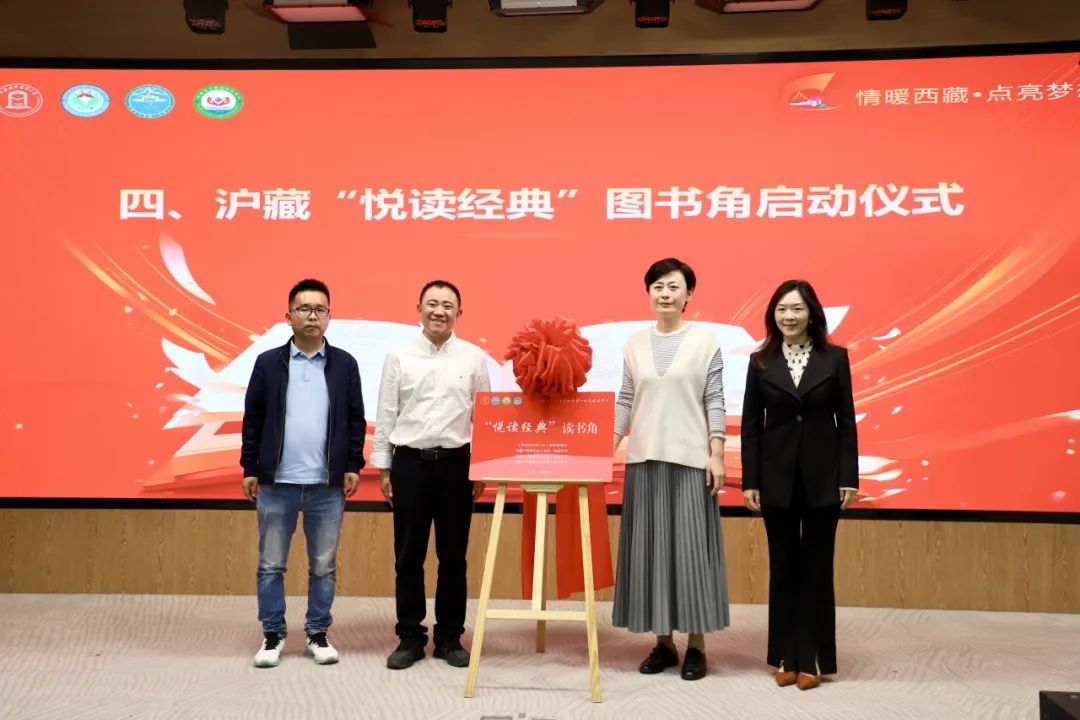 李本峰、汪海鯨、張晴晴、張瑞娟共同為滬藏“悅讀經典”圖書角揭牌。