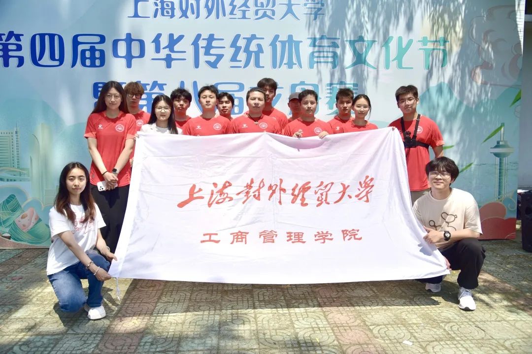 開幕式現場,一條條精工細雕的龍舟在碼頭蓄勢待發,盡顯競技張力。工商管理學院參賽選手身著統一紅色上衣,精神抖擻,以昂揚姿態展現必勝決心。