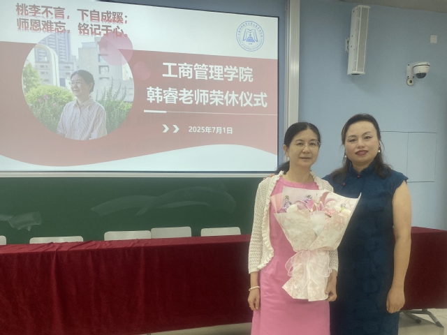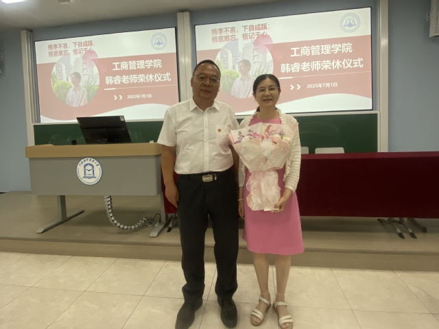 2025年7月1日,工商管理學院在松江校區學思樓D104室為韓睿老師舉行溫馨的榮休儀式。活動由學院黨委書記武增勇主持。