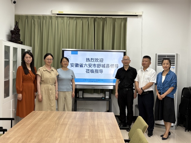 2025年7月4日,安徽省六安市舒城縣委常委、宣傳部長、統戰部長汪健率縣旅游中心主任段平樹、副主任佘海燕一行到訪上海對外經貿大學工商管理學院,就深化“政產學研金服用”融合發展進行調研。工商管理學院院長龍江、副院長楊軍敏、市場營銷系主任左鵬參加調研座談。