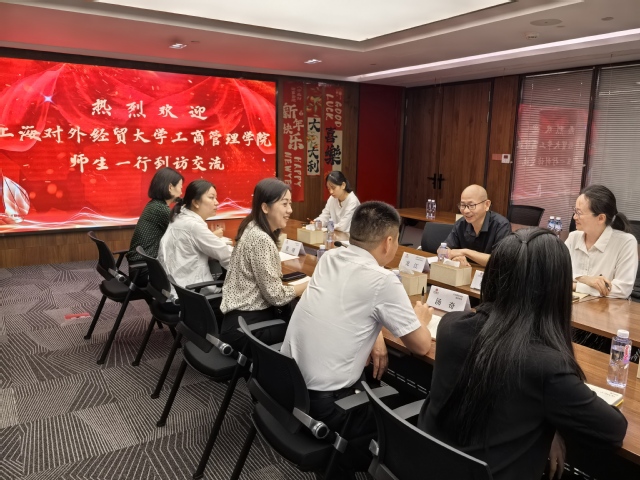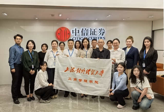 2025年7月8日,上海對外經貿大學工商管理學院院長龍江、副院長楊軍敏、學院辦公室倪瑋婷老師帶隊本科生、研究生一行11人,赴中信證券上海東方路營業部開展訪企拓崗調研活動。中信證券上海東方路營業部總經理朱昳琦、副總經理湯奇、公司業務部業務總監夏曙、人力資源部經理陳錚以及優秀管培生代表參加調研座談。
